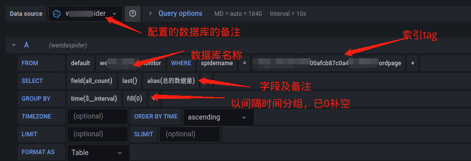 最后向数据库influxdb中写入数据再对接grafana可视化配置.